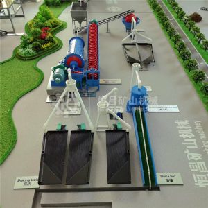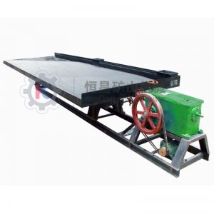 The motor of the shaking table drives the crankshaft via a belt pulley, causing the rocker arm to move up and down. When the rocker arm moves downwards, the mineral material enters through the ore trough on the inclined table with reciprocating bars. The shaking table’s water tank provides transverse impact water. This simultaneous vibration and washing causes minerals with different specific gravities, particle sizes, and densities to flow out from the concentrate outlet and tailings outlet on the table surface in different directions, directly forming a concentrate.